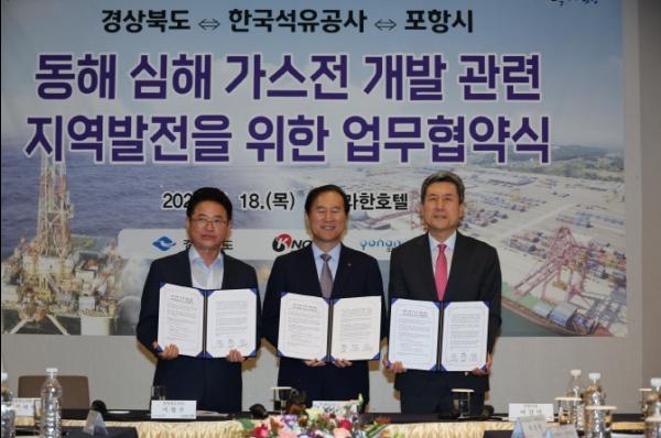 협약서에는 동해 심해 가스전 개발과 관련해 한국석유공사 현장사무소를 포항에 설치하고, 지역 항만을 활용한 기자재 보급기지 조성과 지역 신산업 육성을 위한 시범사업 운영 등이 포함돼 있다.