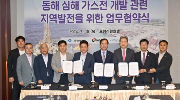 이날 협약은 최근 동해 심해 가스전 개발 프로젝트가 본격 추진되는 가운데 지자체와 한국석유공사 간 지역발전을 위한 상호 협력체계를 마련하기 위해 추진됐다.