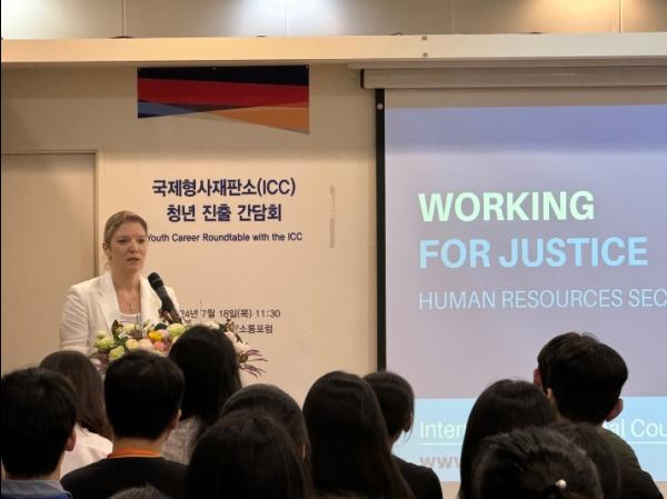외교부는 7월 18일 오전(11:30-13:00) 외교부 청사 정책소통포럼에서 국제형사재판소(ICC) 사무국 채용팀장을 초청하여 ICC 청년 진출 간담회를 개최했다. 이번 간담회에는 청년 변호사, 대학생, 로스쿨생 등 70여명이 참석한 가운데 성황리에 진행됐다.