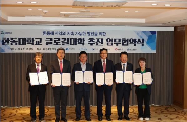 경북도 주관으로 열린 이날 협약식은 글로컬 대학을 기반으로 환동해 지역의 현안을 공동으로 해결하고, 상호협력 체계 구축을 통해 지역 주민의 삶의 질을 향상시키기 위해 마련됐으며, 포항시, 영덕군, 울진군, 울릉군, 한동대가 참여했다.