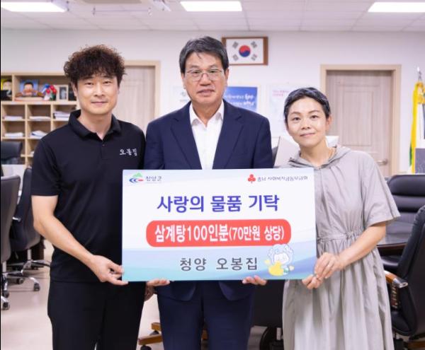 청양 오봉집가 지난 18일 청양군을 방문해 삼계탕 100인분 (70만원 상당)을 기부했다.