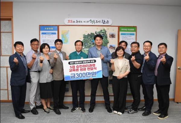 유희태 완주군수는 “전국에서 모인 5급 승진리더과정 교육생들의 기부에 진심으로 감사드리며 후원해 주신 성금은 지역의 호우피해 주민을 위해 소중히 사용하겠다” 고 말했다.
