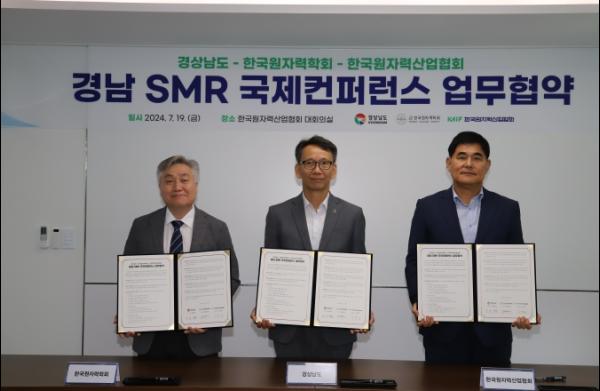 경상남도는 19일 오후 서울 한국원자력산업협회 회의실에서 한국원자력학회, 한국원자력산업협회와 ‘경남 소형모듈원자로(SMR) 국제컨퍼런스’의 성공적 개최를 위한 업무협약을 체결했다.
