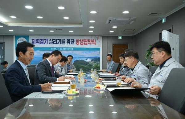 거제시는 22일 시장실에서 지역경기 살리기를 위한 상생협약식을 진행했다.