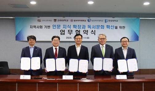 서울 성북구 성북문화재단이 지난 17일 성북구청 미래기획실에서 고려대학교, 동덕여자대학교, 성신여자대학교, 한성대학교와 '지역사회 기반 인문 지식 확장과 독서문화 확산을 위한 업무협약'을 체결했다.