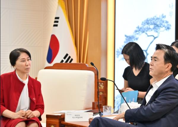 도는 22일 도청 외부접견실에서 김태흠 지사와 아이다 이스마일로바(Aida Ismailova) 주한 키르기즈공화국(키즈기스스탄) 대사가 양 지역의 협력 방한을 논의했다고 밝혔다.