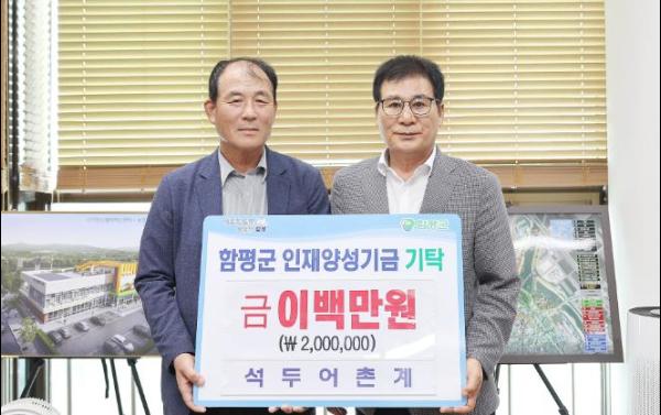 앞서 석두어촌계는 2023년에 200만 원을 함평군 인재양성기금에 기탁함에 이어 올해도 인재양성기금에 장학금을 기탁하며 꾸준한 지역사랑 실천의 귀감이 되고 있다.