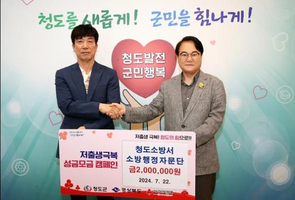 청도군 청도소방서 소방행정자문단은 22일 저출생 극복 성금 200만 원을 청도군에 전달했다.