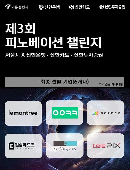 서울시는 유망 핀테크 기업을 위한 개방형 혁신 프로그램(오픈이노베이션)인 '제3회 피노베이션 챌린지:EXPANSION(확장)'을 통해 신한은행·신한카드·신한투자증권과 함께 금융혁신서비스를 개발할 스타트업 6곳을 선발·발표했다.