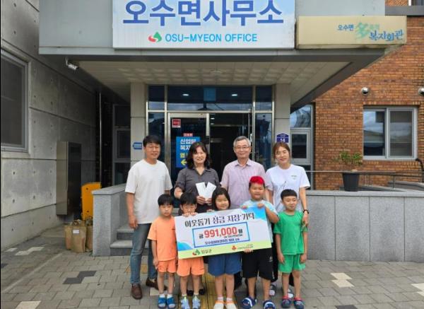 오수원광어린이집이 원아, 가족, 교사들이 함께 사랑나눔 카페 운영을 통한 수익금 991,000원을 오수에 거주하는 저소득 가정들을 위해 사용해 달라며 지난 22일 오수면사무소에 기탁했다.