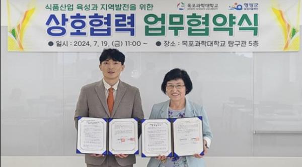 영광군농업기술센터와 목포과학대학교가 지난 19일 목포과학대학교 탐구관에서 식품산업육성과 지역발전을 위한 업무협약을 체결했다.