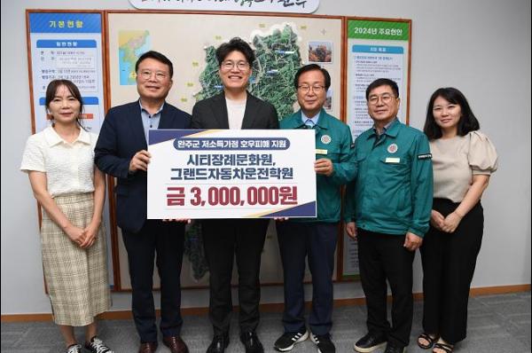 시티장례문화원, 그랜드자동차 운전학원이 완주군 저소득층 및 호우피해가정을 위해 성금 300만 원을 전달했다.
