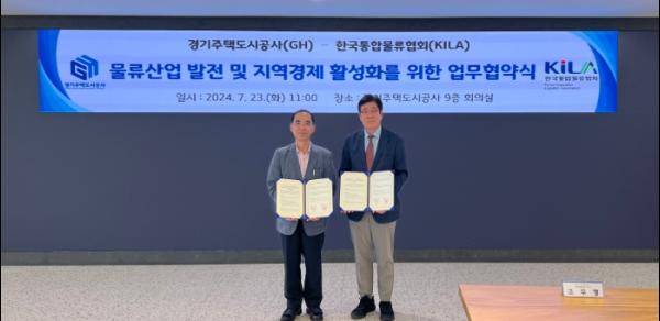 경기주택도시공사(GH)는 23일 광교 신사옥에서 신규 물류 단지 조성 사업의 성공적인 실행을 위해 한국통합물류협회(KOILA)와 업무협약을 체결했다.