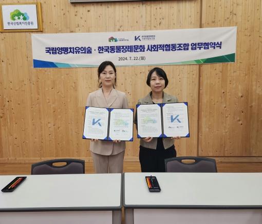 산림청 한국산림복지진흥원 국립양평치유의숲은 22일 양평치유의숲에서 사람과 동물이 모두 함께 행복하고 건강한 반려 문화 조성을 위해 한국동물장례문화 사회적협동조합과 업무협약을 체결했다고 밝혔다.