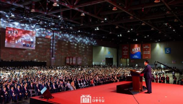 7월 23일 윤석열 대통령은 국민의힘 제4차 전당대회에 참석했다.