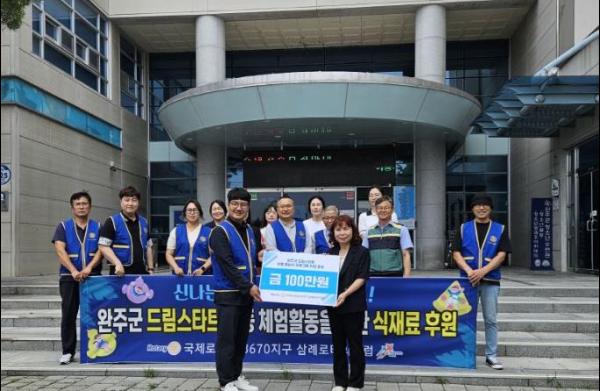 완주군 삼례로타리클럽이 드림스타트 대상 아동들의 물놀이 체험을 위해 후원금 100만 원을 전달했다.