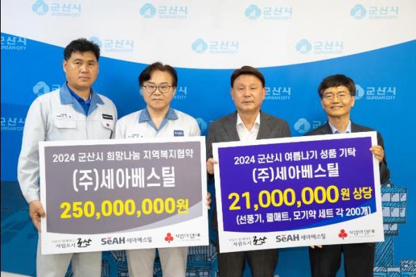 그동안 세아베스틸은 “세상을 아름답게”라는 기업 정신으로 2012년부터 군산시와 『희망나눔 지역복지』 협약을 체결해 다양한 지원을 펼쳤다.