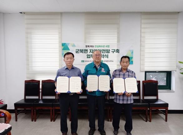 함안군 군북면은 ‘함께 하는 안심파수꾼 사업’의 원활한 추진을 위해 지난 23일 군북면이장협의회, 군북면새마을협의회와 지역안전망 구축을 위한 업무협약을 체결했다고 밝혔다.
