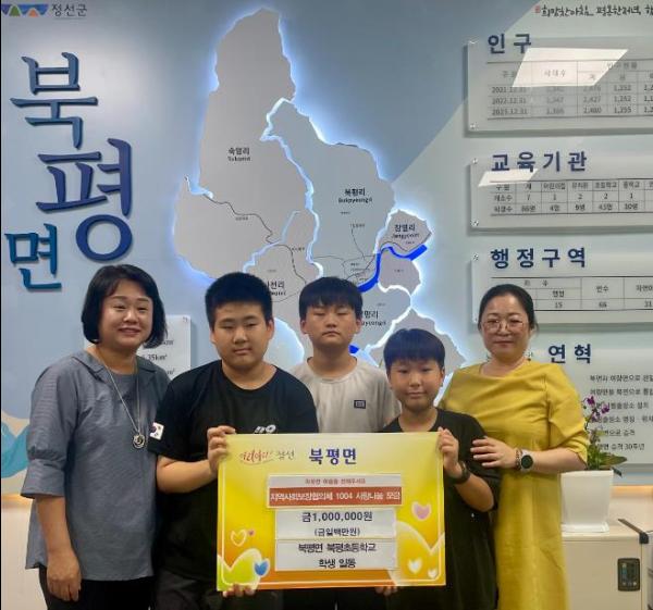 정선군 북평초등학교는 24일 북평면행정복지센터에서 ‘행복을 사고파는 북평초 플프마켓’ 행사를 통해 얻은 수익금 1백만원을 북평면지역사회보장협의체에 기탁했다.