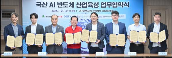 대구광역시는 7월 24일 오후 3시 대구시청 산격청사에서 국내 AI반도체 시장을 선도하는 대표기업들과 ‘국산 AI반도체 산업육성 및 대구시 반도체 산업역량 강화’를 위한 업무협약을 체결했다.
