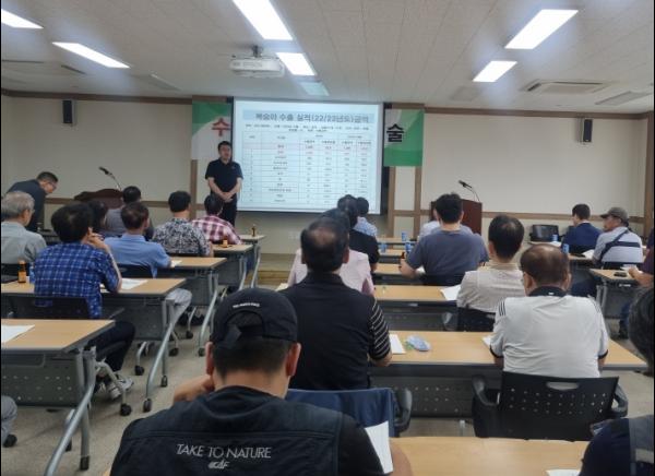 경상북도농업기술원은 23일 경산시 자인농협 회의실에서 복숭아 재배 농가 및 관련 전문가 등 60여 명이 참석한 가운데‘복숭아 저장성 항상 및 수출 확대를 위한 수확후관리 기술 워크숍’을 개최했다.