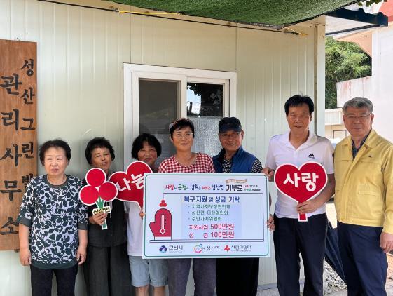 성산면은 지역사회보장협의체(500만원)와 이장단(50만원), 주민자치위원회(50만원) 등 지역 자생단체들이 총 6백만원의 성금을 기탁했다고 밝혔다.