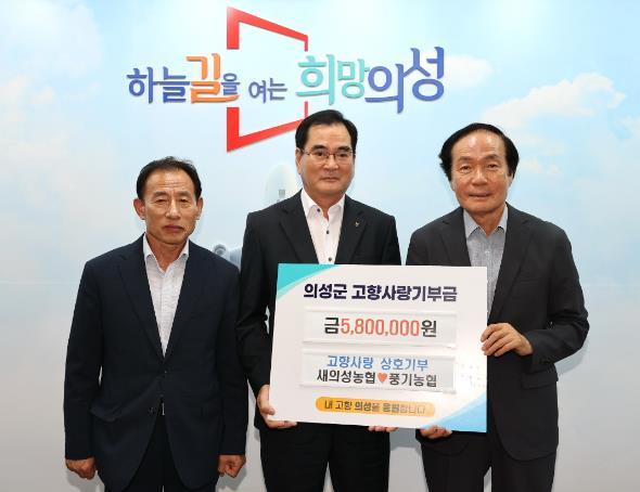 의성군은 지난 23일 새의성농협과 영주 풍기농협이 고향사랑기부금 상호 교차 기탁식을 가졌다고 밝혔다.