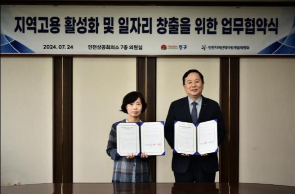 이를 위해 양 기관은 지난 24일 인천상공회의소에서 김정희 인천 중구 행정복지국장, 강석철 인천지역인적자원개발위원회 사무국장 등이 참여한 가운데 ‘지역 고용 활성화 및 일자리 창출 협업 구축 업무협약(MOU)’을 체결했다.