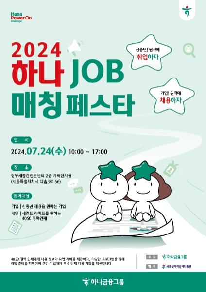이번 ?2024 신중년 하나 JOB 매칭페스타?는 하나금융그룹이 지원하고 (재)세종일자리경제진흥원과 ㈜상상우리가 공동으로 개최했으며, 세종특별자치시 및 인근 지역 소재 기업 51개 사가 참가했다. 이중 케어믹스 사회적협동조합, ㈜다돌, ㈜하마, 우리관리 주식회사, ㈜소닉붐 등 사회적 기업과 지역 강소기업 15개 사는 구직자와 1대1 현장 면접 및 채용 상담을 진행했다.