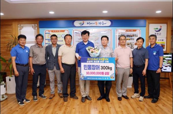 장흥군은 25일 제17회 정남진 장흥 물축제를 맞아 민물장어 300kg(1000만원 상당), 조미김 셋트 50박스(300만원 상당) 기탁식이 열렸다고 밝혔다.