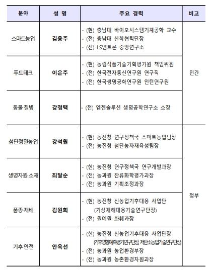 연구개발 영역에 따라 7개 분과를 구성하고 지난 공모를 통해 선정된 민간 분과위원장을 포함, 민간 전문가 3명과 정부 전문가 4명으로 분과위원장을 각각 선정했다. 분과위원장은 산?학?연?관 등 다양하게 구성한 분과위원들과 함께 소관 분야의 중장기 기술개발 로드맵 수립, 신규사업 및 과제기획, 사업별 예산 배분·조정 등의 임무를 수행하며, 연구개발사업 기획 전주기를 총괄하는 역할을 맡게 된다.
