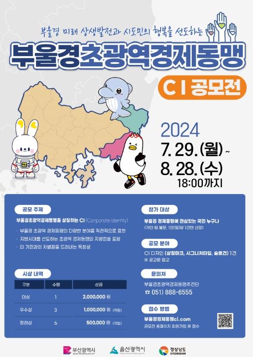 울산시는 부산시, 경상남도와 함께 7월 29일부터 8월 28일까지'부울경초광역경제동맹 상징(CI)'공모전을 개최한다고 밝혔다.