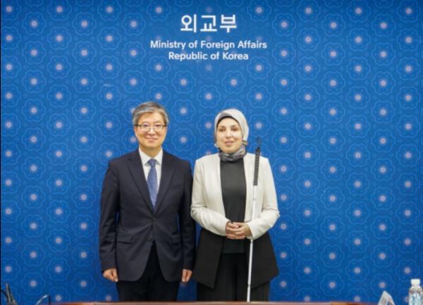 김희상 외교부 경제외교조정관은 7월 26일 방한 중인 사라 민카라(Sara Minkara) 미 국무부 국제장애인인권특별보좌관을 만나 우리나라에서 개최되는 2025년 APEC을 통해 장애인 경제활동 촉진 논의를 심화하기 위한 방안에 대해 이야기를 나눴다.