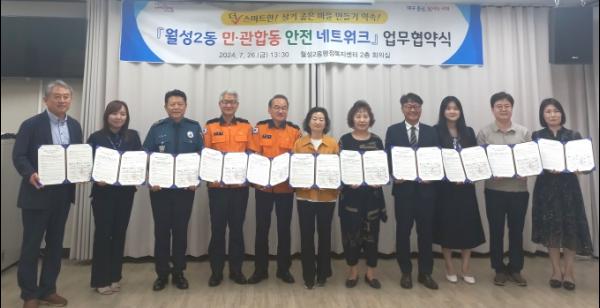 대구 달서구 월성2동은 26일 2층 회의실에서 10개 유관기관과 월성2동 안전협의체 등이 안전하고 살기좋은 마을을 만들고자 '월성2동 민관합동 안전 네트워크'안전지킴 업무 협약을 맺었다.