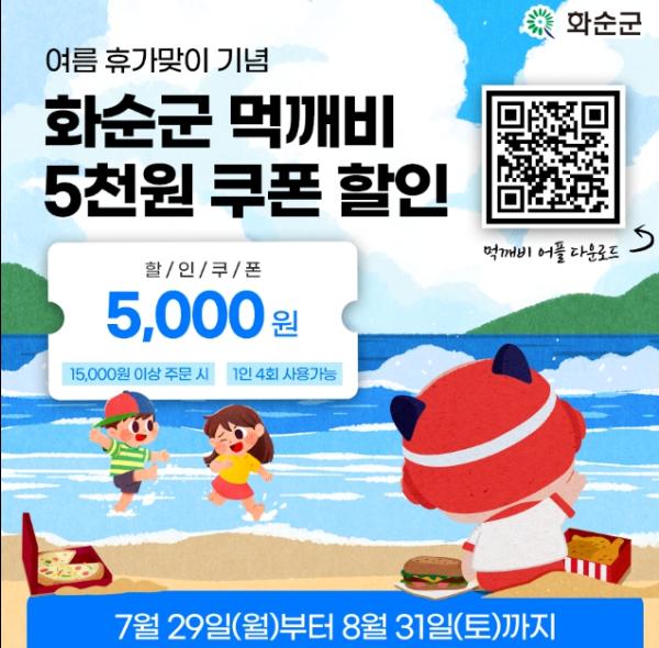 화순군이 7월 29일부터 8월 31일까지 공공배달앱 ‘먹깨비’에서 여름휴가 맞이 이벤트를 진행한다고 밝혔다.