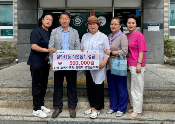 (사)소비자교육중앙회 영암군지회가 26일 어려운 이웃을 위해 써달라며 영암읍지역사회보장협의체에 50만원을 기탁했다.
