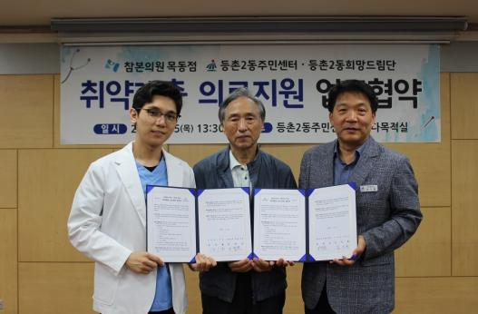 서울 강서구 등촌2동 주민센터는 참본의원 목동점(등촌로 142, 원장 김지호)과 저소득층의 의료비 부담을 덜어주기 위한 협약을 체결했다고 밝혔다.