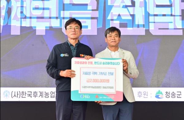 청송군은 (사)한국후계농업경영인 청송군연합회가 지난 26일 한마음가족체육대회 행사에서 저출생 극복을 위한 기부금 200만원을 기탁했다고 밝혔다.