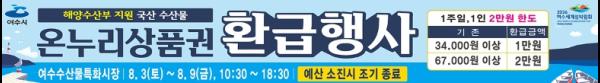 여수시가 8월 3일부터 9일까지 여수수산물특화시장에서 수산물을 구매하면 구매 금액 최대 30%를 온누리상품권으로 환급한다고 밝혔다.