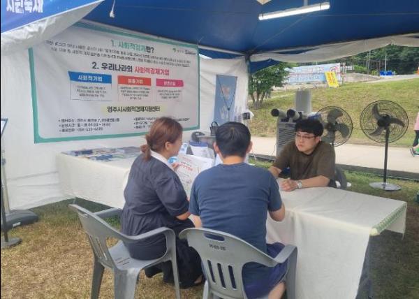 ‘사회적경제와 함께하는 시원하고 건강한 여름나기’를 주제로 운영되는 이번 행사는 영주시 사회적경제기업 제품 홍보와 참여 이벤트 진행을 통해 시민들의 사회적경제로의 접근성 제고를 위해 마련됐다.