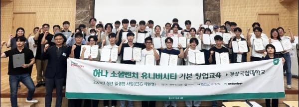 경상국립대학교와 언더독스가 공동 주관한 '2024 하나소셜벤처유니버시티'의 수료식이 7월 26일 경상국립대 내동캠퍼스 101호에서 진행됐다.