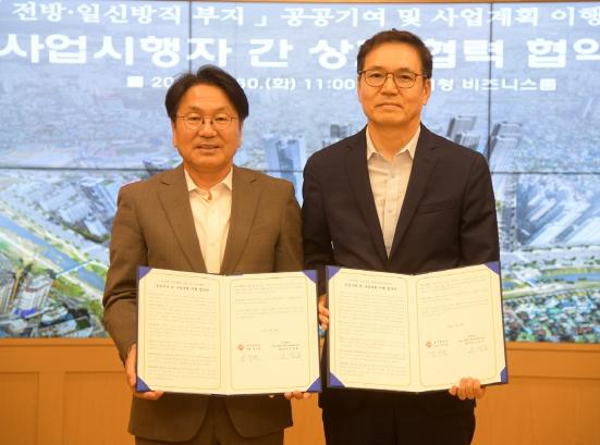 협약은 ‘옛 전방·일신방직 부지 개발사업’에 대한 공공기여 규모, 제공시기, 분납방법, 랜드마크 타워 등 사업계획 이행에 대한 세부적인 내용을 담고 있다.