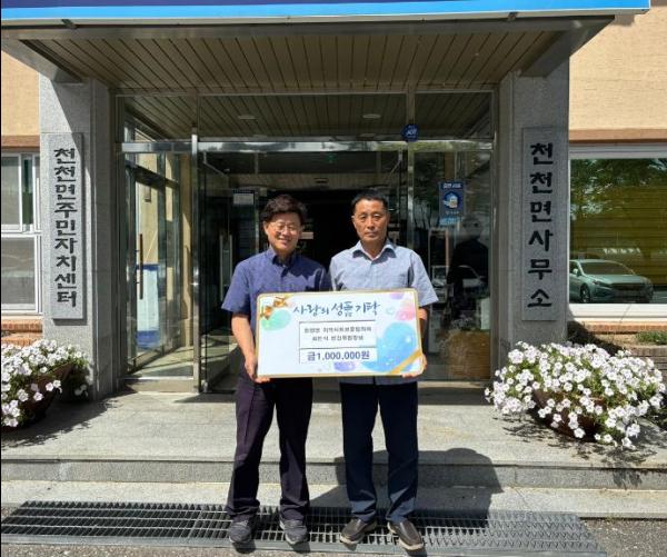 황현철 천천면장은 “민간위원장님께서 항상 천천면의 발전을 위해 노력해주셔서 감사드린다”며 “기탁하신 성금은 지역의 도움이 필요한 이웃을 위해 소중히 사용하겠다”고 전했다.