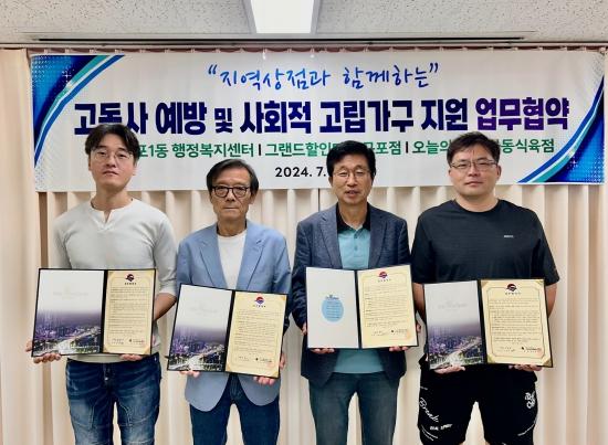 부산 북구 구포1동 행정복지센터는 지난 30일 지역상점 3곳과 고독사 예방 및 사회적 고립가구 지원을 위한 업무협약을 체결했다고 밝혔다.