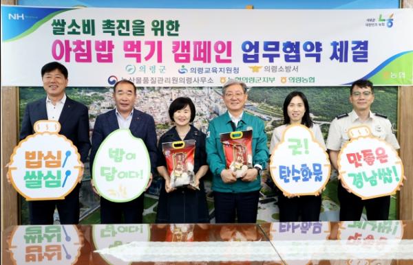 오태완 군수는“금번 협약으로 우리 지역 쌀 소비를 촉진하고 아침밥 먹기 생활화로 건강한 식습관 형성에 도움이 되길 바란다”고 말했다.