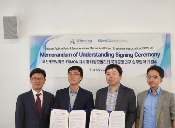 부산시와 부산테크노파크는 현지시각으로 7월 31일 오후 1시 영국 코번트리 워릭대학교(University of Warwick)에서 한-유럽조선해양전문가협회(EKMOA, Europe-Korea Marine and Ocean Engineers Association)와 '차세대 해양모빌리티 글로벌 혁신특구 국제공동연구개발 협력 업무협약'을 체결했다고 밝혔다.