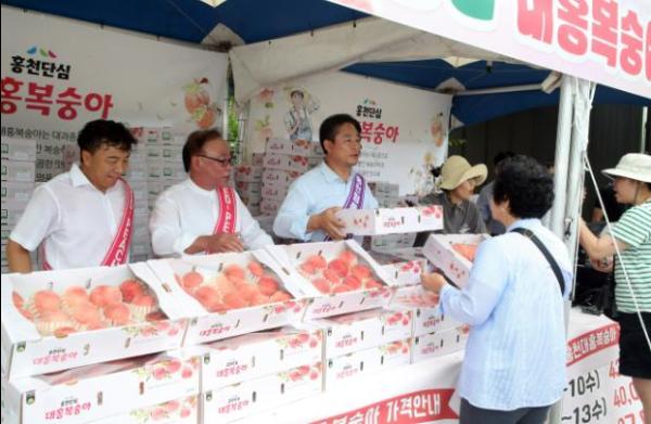 홍천군은 휴가철을 맞아 8월 1일부터 8월 18일까지 서울-양양고속도로 홍천휴게소 로컬푸드 행복상터(상·하행선)에서 홍천 대홍복숭아 판매행사를 추진한다.