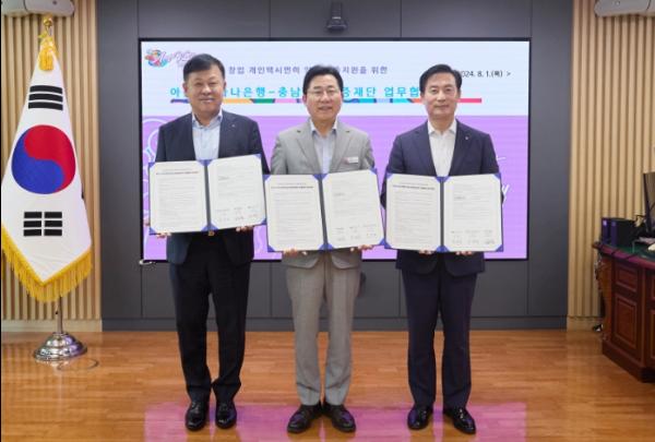 박경귀 아산시장은 8월 1일 시장실에서 하나은행 충남북영업본부(지역대표 김세용), 충남신용보증재단(이사장 김두중)과 만나 청년창업 개인택시 양수 대출 지원을 위한 업무협약을 체결했다.