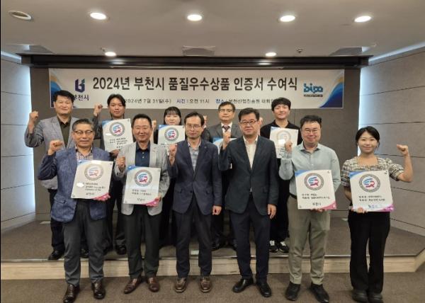 부천산업진흥원은 부천시 소재 중소기업 생산제품을 대상으로 2024년 부천시 품질우수상품 선정 절차를 완료하고 지난달 31일 인증서 수여식을 개최했다.