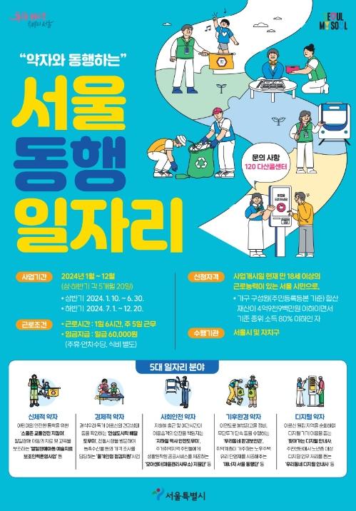 관악구가 경제적 어려움을 겪는 저소득층, 취업 취약계층, 실직자 등의 생계 및 자립 지원을 위해 ‘2024년도 하반기 서울 동행일자리 사업’ 참여자를 추가 모집한다.